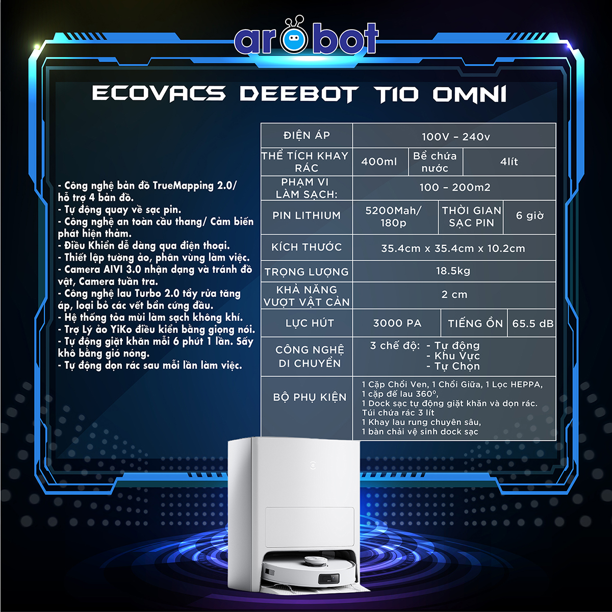 Kết hợp động cơ tân tiến với thiết kế quạt xoắn ốc cùng cánh quạt kính cường lực. DEEBOT T10 có thể duy trì một lực hút lên đến 5000Pa
