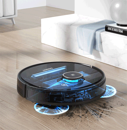 Robot có thể hút sạch hiệu quả các loại bụi to như hạt đậu nành hoặc bi thép, bụi nhỏ, tóc rối hay lông thú còn vương lên sàn nhà và hiệu quả lên tới 90%.