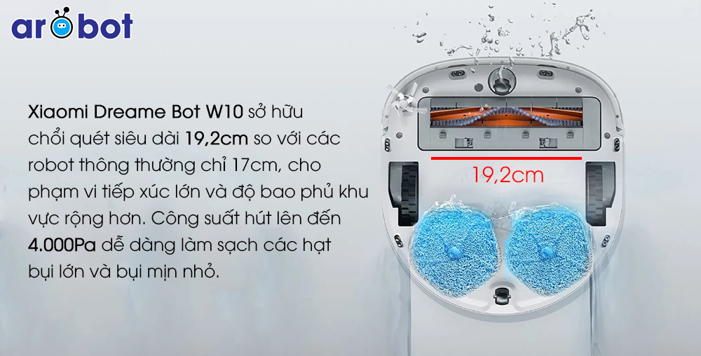 Sự khác biệt lớn nhất của robot hút bụi lau nhà Dreame W10 với các robot lau nhà truyền thống là thực hiện hai công việc quét dọn và lau nhà cùng một lúc, điều này cũng có nghĩa là hiệu quả công việc dọn dẹp nhà cửa của robot gần như tăng gấp đôi. Đầu tiên thông qua chổi chính và chổi phụ để làm sạch bụi bẩn, rác trên sàn nhà, tiếp theo đó hệ thống lau nhà kéo theo sẽ làm sạch vết bẩn trên sàn nhà, vì vậy có thể nhanh chóng làm sạch sàn nhà trong thời gian nhanh nhất.