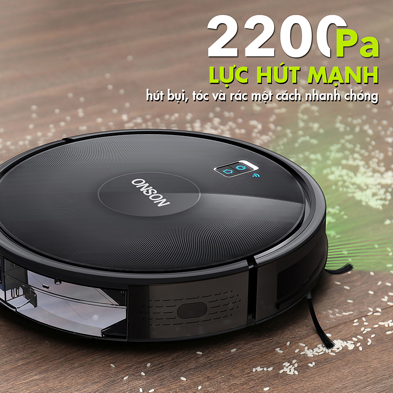 Công suất hút mạnh 2200Pa hút sạch bụi, mảnh vụn và chất bẩn. Máy hút robot mỏng GOOVI lý tưởng cho các loại mặt sàn.