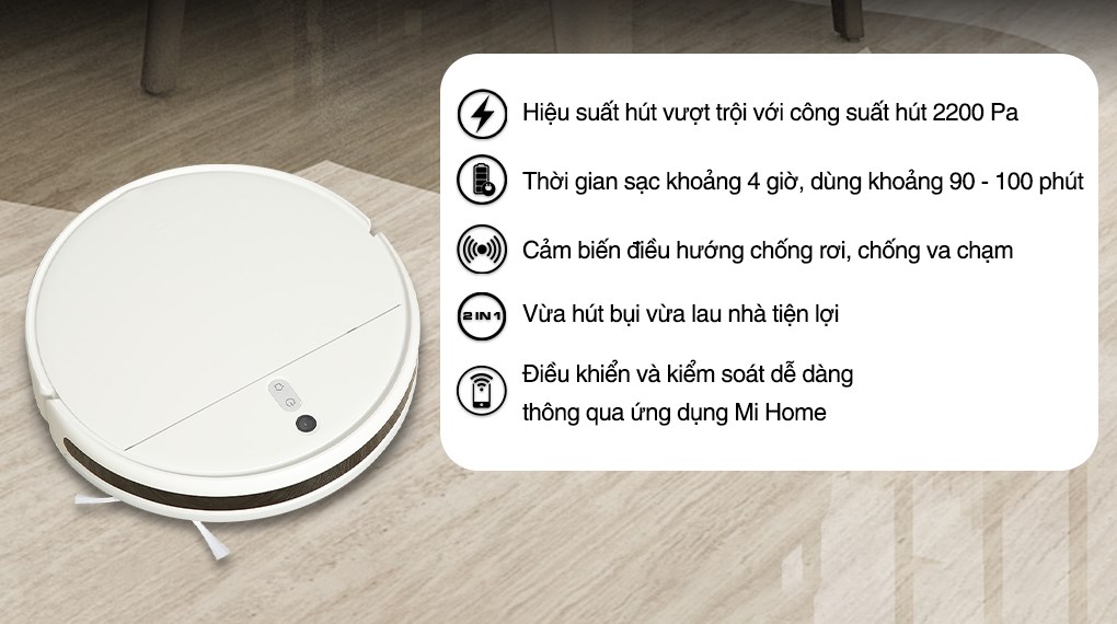 Kèm theo đó, thiết bị này còn sở hữu bộ lọc HEPA giúp lọc hiệu quả các hạt bụi có kích thước siêu nhỏ chỉ 0.3 micromet. Xiaomi trang bị cho em máy này với 3 chế độ hoạt động bao gồm chế độ hút bụi, chế độ lau nhà và chế độ vừa hút bụi vừa lau nhà với mục đích giúp bạn tùy chỉnh theo yêu cầu.